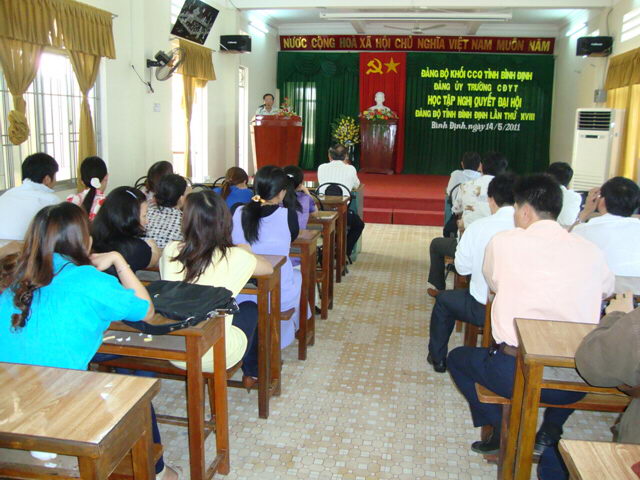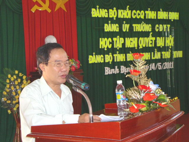 Thực hiện kế hoạch số 03-KH/ĐU ngày 22/4/2011 của Đảng ủy Khối các cơ quan tỉnh về việc tổ chức học tập, quán triệt Nghị quyết Đại hội đại biểu Đảng bộ tỉnh lần thứ XVIII, vào sáng ngày 14/05/2011 Đảng ủy trường Cao đẳng Y tế Bình Định đã triển khai tổ chức học tập, quán triệt Nghị quyết trong toàn thể đảng viên, giáo viên và cán bộ công nhân viên. Về dự và truyền đạt Nghị quyết có đồng chí Võ Xuân Sơn - Trưởng phòng tuyên truyền Ban tuyên giáo Tỉnh ủy.