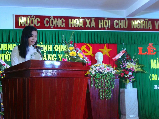 Tiếp theo chương trình thầy Trần Đình Đạt - Bí thư Đảng ủy, Hiệu trưởng nhà trường đã đọc diễn văn chào mừng, ôn lại truyền thống lịch sử của ngày Quốc tế hiến chương các nhà giáo và đánh giá lại những thành quả mà nhà trường đã đạt được trong năm qua. Ngày 20/11 đã trở thành ngày truyền thống mang nhiều ý nghĩa cao đẹp, là ngày hội của giáo giới Việt Nam, ý nghĩa hơn cả là ngày toàn xã hội tri ân và hướng tới vị trí cao quý của nghề dạy học và người làm nghề dạy học.