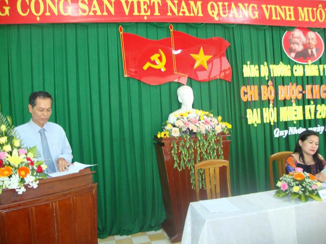 Đ/c Lê Quang Đáng - Phó Bí thư Đảng ủy nhà trường đã phát biểu chỉ đạo Đại hội: Đảng ủy đánh giá cao những kết quả mà chi bộ đã đạt được trong nhiệm kỳ qua. Chi bộ Dược - KHCB - KTYH là chi bộ có một lực lượng giảng viên/giáo viên lớn, chiếm đến một nữa đội ngũ giảng viên/giáo viên của nhà trường và đảm đương 50% khối lượng công tác đào tạo, góp phần trong công tác đào tạo chung của nhà trường. Trong thời gian đến, chi bộ cần chú trọng đến các mặt công tác sau: Tăng cường việc học tập và làm theo tư tưởng, đạo đức, phong cách Hồ Chí Minh; nâng cao chất lượng công tác giảng dạy, dạy học có trách nhiệm vì học sinh, sinh viên thân yêu; nâng cao chất lượng đội ngũ giáo viên, nhất là bộ môn Dược. Cần đẩy mạnh hơn nữa công tác nghiên cứu khoa học, tăng cường công tác phát triển đảng viên mới nhất là giáo viên trẻ, nữ.