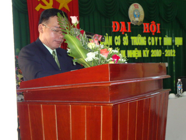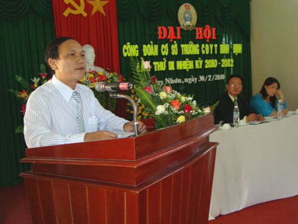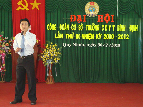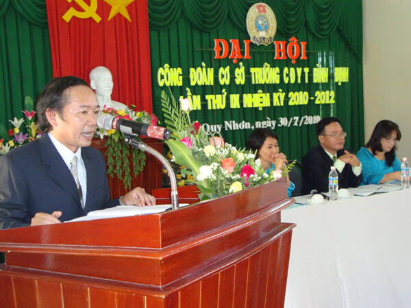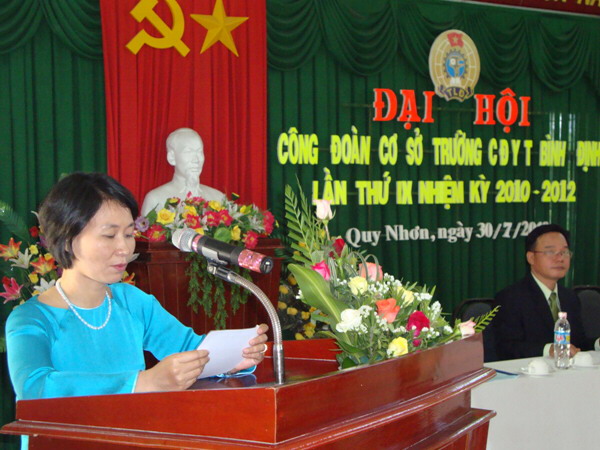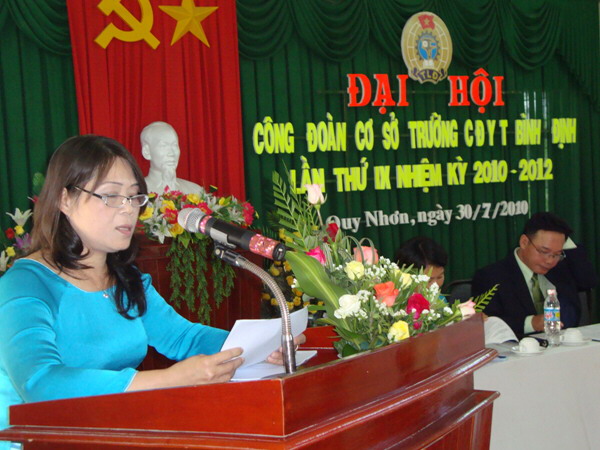 Đồng chí Nguyễn Ngọc Anh - Phó chủ tịch Liên đoàn Lao động tỉnh đã phát biểu chỉ đạo Đại hội: Bản Báo cáo tổng kết hoạt động công đoàn trường CĐYT Bình Định nhiệm kỳ VIII (2008 - 2010) và phương hướng hoạt động nhiệm kỳ IX (2010 - 2012) đã bám sát nhiệm vụ chính trị của nhà trường và những nhiệm vụ của Đảng và Nhà nước giao cho nhà trường. Trong thời gian tới Công đoàn nhà trường cần có các giải pháp, biện pháp để nâng cao hơn nữa chất lượng đội ngũ cán bộ công chức, viên chức, trong đó cần quan tâm đến đội ngũ cán bộ nữ; gắn liền công tác chuyên môn với công tác nghiên cứu khoa học, với việc học tập và làm theo tấm gương đạo đức Hồ Chí Minh; từng bước đổi mới hoạt động của Ban chấp hành công đoàn; phát huy vai trò của công đoàn trong việc kiểm tra, nhắc nhở và chú trọng phát động phong trào thi đua yêu nước, nhân điển hình tiên tiến góp phần thực hiện thắng lợi nhiệm vụ chính trị của đơn vị.