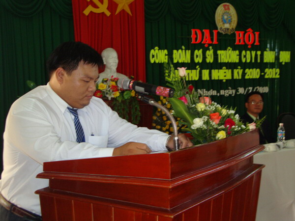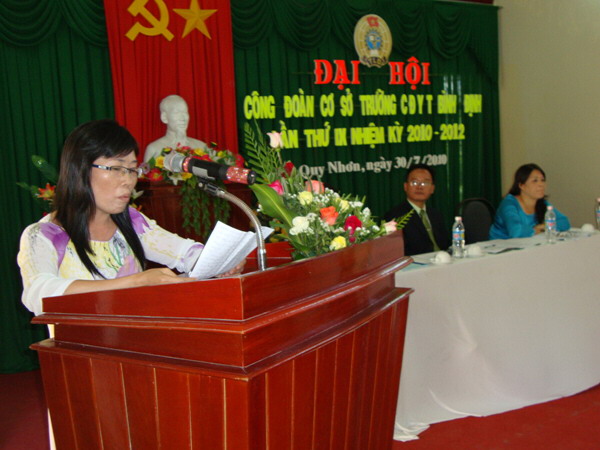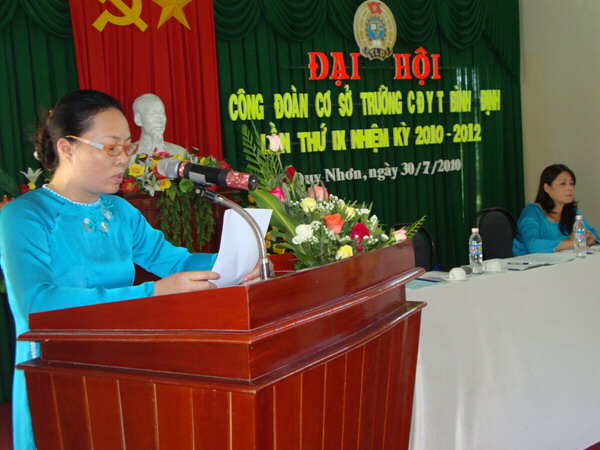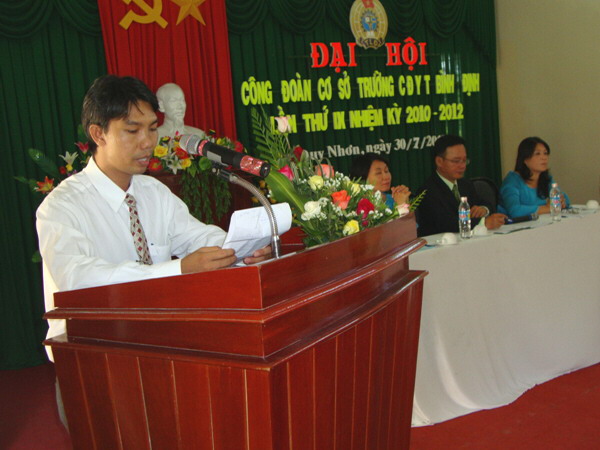 Sau diễn văn khai mạc Đại hội, đồng chí Nguyễn Hữu Hùng - Chủ tịch công đoàn trường đọc Báo cáo tổng kết hoạt động công đoàn trường CĐYT Bình Định nhiệm kỳ VIII (2008 - 2010) và phương hướng hoạt động nhiệm kỳ IX (2010 - 2012).