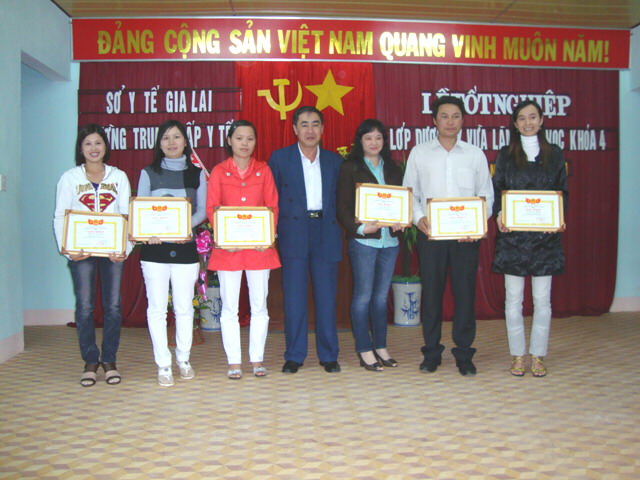 Thầy Lê Quang Đáng - Phó Hiệu trưởng trường CĐYT Bình Định trao bằng tốt nghiệp và giấy khen đến các học viên đã nổ lực phấn đấu trong kỳ thi và dặn dò, động viên các em tiếp tục phấn đấu học tập không ngừng, cố gắng vươn lên, tất cả vì mọi người thân yêu, vì cuộc sống và hạnh phúc của người dân.