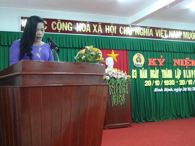 Về dự buổi lễ có đ/c Lê Thị Kim Chi - Phó ban Tuyên giáo và Nữ công LĐLĐ tỉnh Bình Định. Về phía nhà trường có đ/c Trần Đình Đạt - Bí thư Đảng ủy, Hiệu trưởng nhà trường cùng các đ/c trong Ban giám hiệu và toàn thể giáo viên, CBCNV trong toàn trường.
