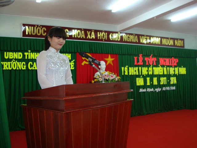 Đại diện học sinh nhận bằng tốt nghiệp và phát biểu cảm tưởng bày tỏ lòng cảm ơn chân thành đến thầy cô giáo, CBCNV và các đơn vị y tế và xin hứa sẽ ra sức trao dồi chuyên môn, nghiệp vụ, hoàn thành tốt nhiệm vụ công tác được giao.