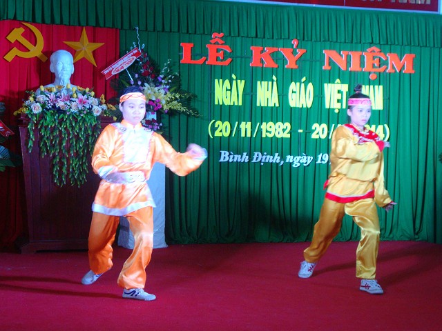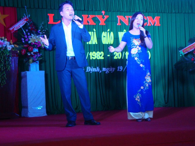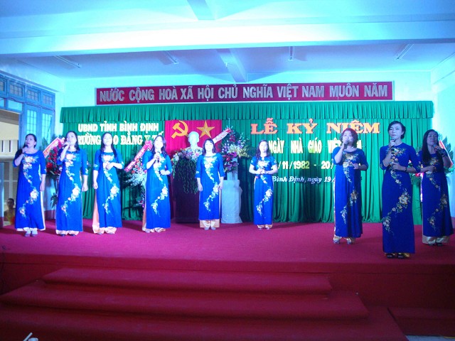 Mở đầu buổi lễ là những tiết mục văn nghệ do thầy cô giáo và các em học sinh, sinh viên nhà trường biểu diễn với chủ đề ca ngợi Tổ quốc, ca ngợi người giáo viên nhân dân.
