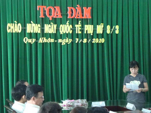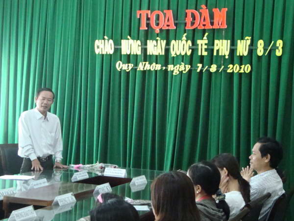 Tham dự buổi tọa đàm có các đồng chí trong Ban Giám hiệu và các thầy cô giáo, cán bộ công chức, viên chức nhà trường. Mở đầu buổi tọa đàm, cô Nguyễn Thị Lệ Thương - Trưởng Ban nữ công đã đọc diễn văn ôn lại truyền thống ngày Quốc tế Phụ nữ. Tiếp theo, thầy Nguyễn Hữu Hùng - Chủ tịch công đoàn đã đọc các quyết định khen thưởng phụ nữ hai giỏi và khen thưởng của công đoàn. Thầy Trần Đình Đạt - Hiệu trưởng nhà trường đã phát biểu chúc mừng và nói lên vai trò của phụ nữ, ghi nhận những công lao đóng góp của phụ nữ nhà trường trong thời gian qua.