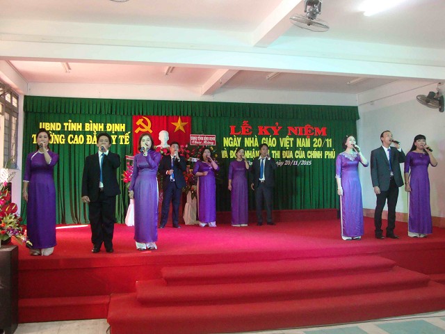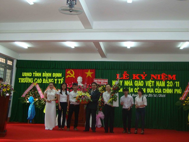 Chiều ngày 20/11/2015, trường Cao đẳng Y tế Bình Định đã long trọng tổ chức Lễ kỷ niệm ngày Nhà giáo Việt Nam 20/11/2015 và đón nhận cờ thi đua của Chính phủ. Về dự buổi lễ có đ/c Mai Thanh Thắng - Thường vụ Tỉnh ủy, Phó Chủ tịch UBND tỉnh, bà Nguyễn Thị Thanh Bình - Nguyên Phó Chủ tịch UBND tỉnh, cùng lãnh đạo của các Sở, ban, ngành, đoàn thể, lãnh đạo các trường Đại học, Cao đẳng, Trung cấp chuyên nghiệp, lãnh đạo các đơn vị y tế trong tỉnh và toàn thể Ban Giám hiệu, các thầy cô giáo cơ hữu/thỉnh giảng, CBCC-VC cùng các em học sinh/sinh viên nhà trường.