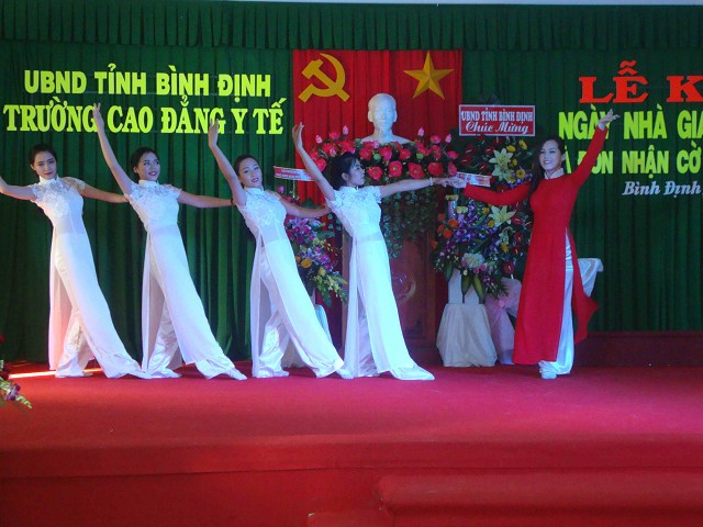 Mở đầu buổi lễ là những tiết mục văn nghệ chào mừng do Công đoàn và Đoàn thanh niên trường Cao đẳng Y tế Bình Định biểu diễn.