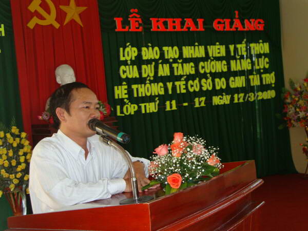 Thầy Lê Quang Đáng - Phó Hiệu trưởng nhà trường phát biểu khai mạc lớp đào tạo nêu lên mục đích của việc đào tạo là nhằm tiếp tục thực hiện nhu cầu có đủ đội ngũ cán bộ y tế thôn bản của tỉnh nhà để đảm đương được nhiệm vụ cung cấp các dịch vụ chăm sóc sức khỏe ban đầu có chất lượng cho nhân dân tại thôn. Đồng thời cũng nêu lên mục tiêu đào tạo, nội dung đào tạo, thời gian đào tạo, kinh phí đào tạo của lớp học.