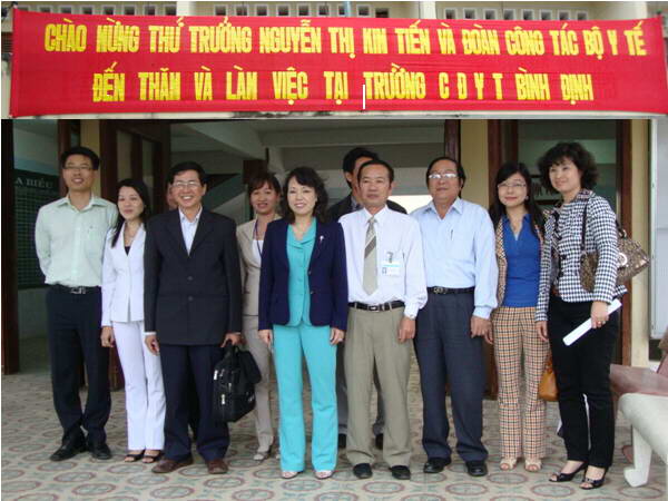 Nhân chuyến công tác tại tỉnh Bình Định, chiều ngày 10/03/2010, Thứ trưởng Nguyễn Thị Kim Tiến và Đoàn công tác Bộ Y tế đã đến thăm và làm việc tại trường Cao đẳng Y tế Bình Định.