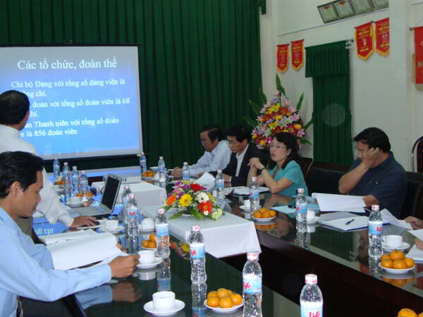 Đón đoàn có các đồng chí trong Ban Giám hiệu và trưởng các phòng, trưởng các bộ môn trong nhà trường.