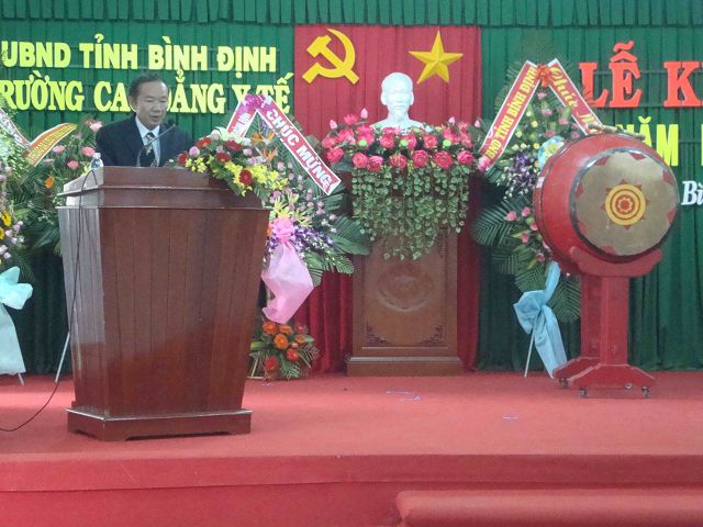 Đ/c Nguyễn Tuấn Thanh - Tỉnh ủy viên, Phó Chủ tịch UBND tỉnh Bình Định đã phát biểu chỉ đạo: đánh giá cao những thành tích mà nhà trường đạt được trong năm học qua và đã được UBND tỉnh Bình Định tặng Bằng khen của Khối thi đua các trường Đại học, Cao đẳng, Trung cấp chuyên nghiệp và Trung tâm Giáo dục thường xuyên. Trong năm học mới nhà trường cần phải: Tiếp tục triển khai chương trình hành động thực hiện Nghị quyết Đại hội Đảng các cấp; tiếp tục cụ thể hóa Nghị quyết 29-NQ/TW ngày 4/11/2013 của BCHTW Đảng về “Đổi mới căn bản, toàn diện giáo dục và đào tạo”; mở rộng đào tạo các ngành nghề và nâng cấp trình độ cho đội ngũ cán bộ y tế từ trung cấp lên cao đẳng; nhà trường cần tiếp tục phát triển đội ngũ giảng viên đạt chuẩn, xây dựng tập thể sư phạm nhà trường vững mạnh; các em học sinh/sinh viên cần nổ lực học tập, rèn luyện tay nghề để trở thành người cán bộ y tế giỏi trong tương lai.