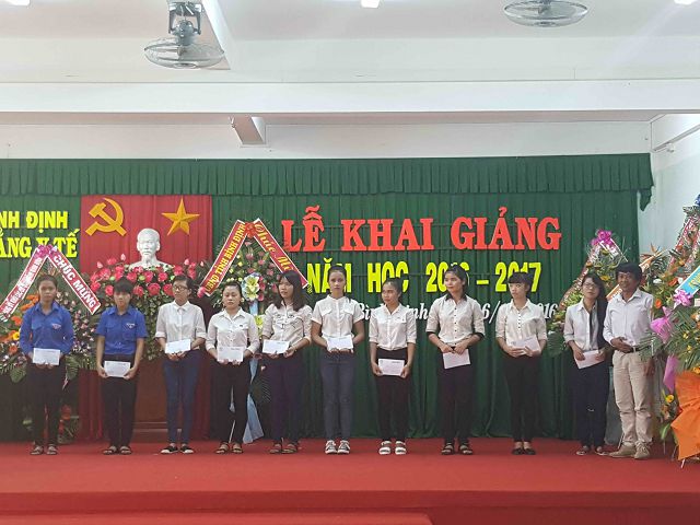 Nhà trường đã khen thưởng cho 17 học sinh/sinh viên có thành tích xuất sắc trong học tập và 10 học sinh/sinh viên có thành tích trong hoạt động phong trào, đạt học tập khá trở lên, mỗi học sinh/sinh viên 1 triệu đồng. Ngân hàng Vietcombank đã trao tặng 20 suất học bỗng, ngân hàng Agribank đã trao tặng 15 suất học bỗng và Trung tâm Thương mại Nhơn đã trao 10 suất học bỗng cho các em học sinh/sinh viên có hoàn cảnh đặc biệt khó khăn, vươn lên trong học tập, mỗi xuất trị giá 1 triệu đồng.