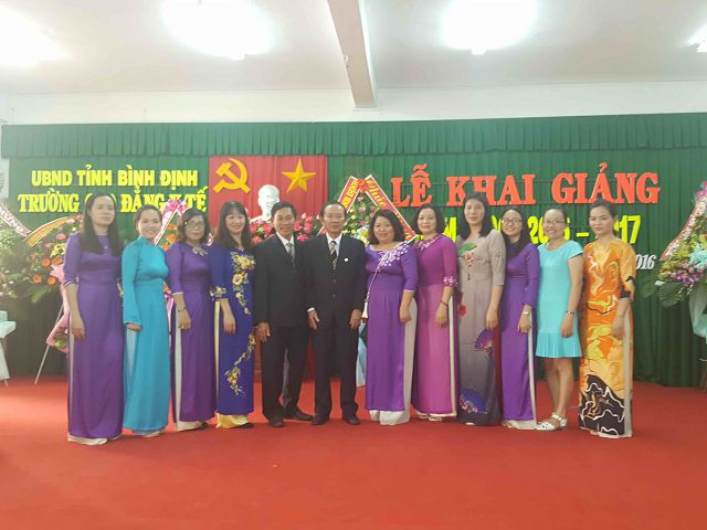 Về tham dự buổi lễ có đ/c Nguyễn Tuấn Thanh - Tỉnh ủy viên, Phó Chủ tịch UBND tỉnh Bình Định, đ/c Nguyễn Bá Trà - Bí thư Đảng ủy Khối các cơ quan tỉnh Bình Định, đại diện lãnh đạo của các Sở, Ban, Ngành trong tỉnh, Tỉnh Đoàn Bình Định và Thành Đoàn Quy Nhơn; đại diện lãnh đạo các Bệnh viện, Trung tâm y tế, các trường Đại học, Cao đẳng, Trung cấp chuyên nghiệp; các nhà tài trợ: Agribank, Vietcombank, Trung tâm Thương mại Nhơn và các đơn vị liên quan. Về phía nhà trường có TS.BS Trần Đình Đạt - Bí thư Đảng ủy, Hiệu trưởng nhà trường, cùng các đ/c trong Ban giám hiệu, toàn thể cán bộ, giảng viên/giáo viên và 150 học sinh/sinh viên đại diện cho hơn 2.000 học sinh/sinh viên nhà trường.