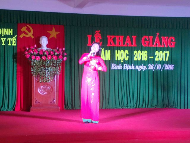 Cô giáo Hà Thị Thủy - Bộ môn Điều dưỡng đã đại diện cho gần 90 thầy cô giáo trong nhà trường phát biểu cảm tưởng trong buổi lễ khai giảng, bày tỏ lòng biết ơn chân thành đến các cấp ủy đảng, chính quyền, đoàn thể đã tạo những môi trường thuận lợi để các thầy cô giáo có điều kiện đem hết tri thức và nhiệt huyết của mình góp phần vào sự nghiệp giáo dục - đào tạo. Cô giáo cũng bày tỏ những trăn trở của mình trong công tác đào tạo và mong muốn các cấp lãnh đạo luôn tạo điều kiện thuận lợi để các thầy cô giáo tiếp tục phát huy năng lực, ra sức học tập nâng cao trình độ chuyên môn, nghiệp vụ, trao dồi đạo đức để hoàn thành xuất sắc nhiệm vụ đào tạo học sinh/sinh viên trở thành người cán bộ y tế vừa hồng vừa chuyên.
