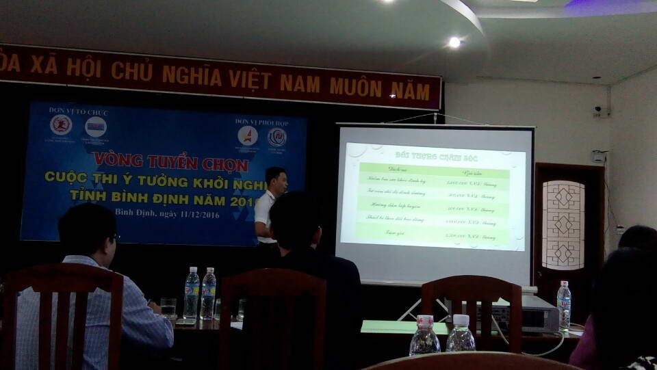 Kết quả: Ý tưởng Dịch vụ chăm sóc sức khỏe cho người cao tuổi của sinh viên Nguyễn Thành Lai vinh dự là 1 trong 3 ý tưởng xuất sắc nhất của cuộc thi “Ý tưởng khởi nghiệp tỉnh Bình Định năm 2016”.