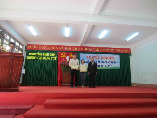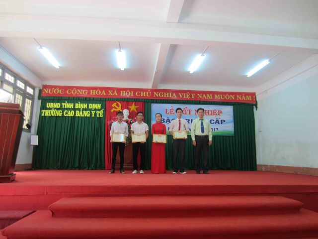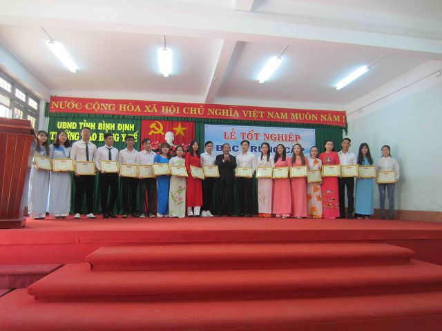 Chiều ngày 05/10/2017, trường Cao đẳng Y tế Bình Định đã long trọng tổ chức Lễ tốt nghiệp bậc trung cấp cho: 20 học sinh Hộ sinh, 53 học sinh Y sĩ đa khoa, 17 học sinh Kỹ thuật viên xét nghiệm đa khoa, 44 học sinh Dược sĩ, 41 học viên Dược sĩ hệ vừa làm vừa học và 32 Dược tá đã đạt kết quả trong kỳ thi tốt nghiệp khóa thi ngày 21/8/2017 và ngày 14/9/2017.