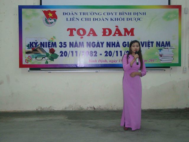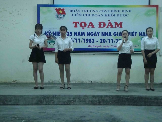 Cùng hòa chung với không khí của cả nước, vào chiều ngày 15/11/2017 được sự nhất trí của Ban Thường vụ Đoàn trường Cao đẳng Y tế Bình Định, Liên Chi Đoàn khối Dược long trọng tổ chức buổi “TỌA ĐÀM TRI ÂN THẦY CÔ” chào mừng Kỷ niệm 35 năm ngày Nhà giáo Việt Nam 20/11/1982 - 20/11/2017.