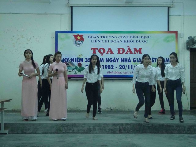 Mở đầu chương trình là các tiết mục văn nghệ chào mừng. Tiếp theo chương trình cô Nguyễn Thị Hồng Vân - Bí thư Liên chi đoàn khối Dược đọc diễn văn kỷ niệm 35 năm ngày Nhà giáo Việt Nam. Thầy Lê Quang Đáng - Phó Bí thư Đảng ủy, Phó Hiệu trưởng nhà trường phát biểu chào mừng, ghi nhận sự đóng góp đầy trách nhiệm và có hiệu quả của các thầy cô giáo bộ môn Dược, đã ngày đêm tận tụy với công việc, góp phần đào tạo ra những cán bộ y tế trẻ đủ đức đủ tài, đảm nhận những vai trò khác nhau trong sự nghiệp chăm sóc và bảo vệ sức khỏe nhân dân. Sinh viên Đàm Thị Mỹ Linh - Lớp Dược sĩ cao đẳng 5A, đại diện cho các bạn sinh viên khối Dược phát biểu cảm nghĩ của mình nhân ngày 20/11.