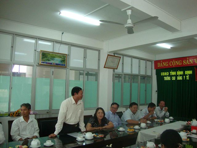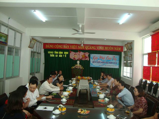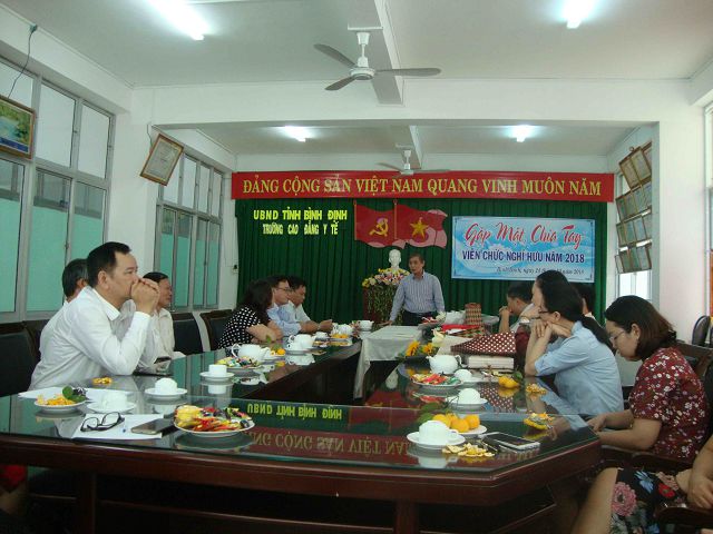 Thầy Trần Đình Đạt phát biểu, ghi nhận những công lao mà các đ/c nghỉ hưu đã đóng góp cho nhà trường, nhất là thầy Lê Quang Liêm đã đặt nền móng cho việc nâng cấp nhà trường lên thành trường Cao đẳng Y tế, đánh dấu sự phát triển vươn lên không ngừng của nhà trường; đồng thời trao quyết định nghỉ hưu và tặng hoa. Ban Giám hiệu, Công đoàn nhà trường và các phòng/bộ môn cũng tặng hoa và quà kỷ niệm cho các đ/c nghỉ hưu. Những kỷ niệm vui buồn trong thời gian công tác được các đ/c nghỉ hưu và các phòng/bộ môn ôn lại trong không khí đầm ấm.