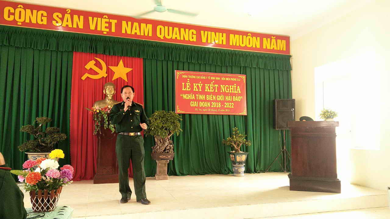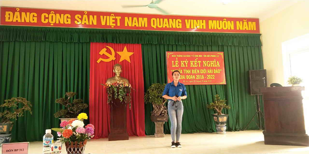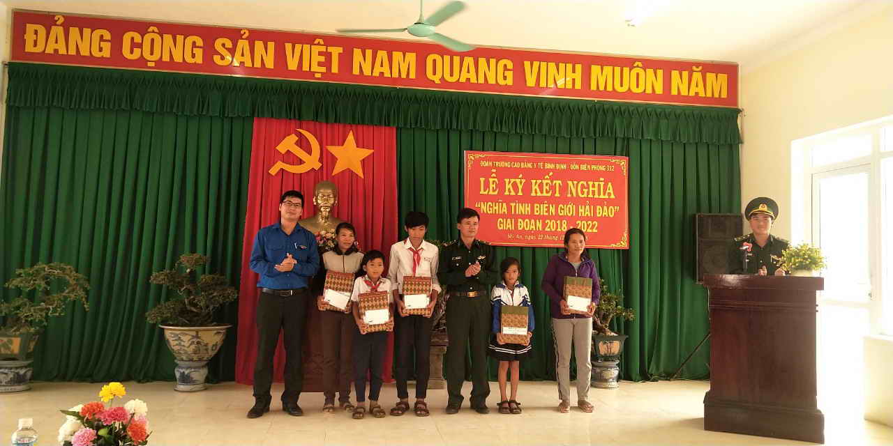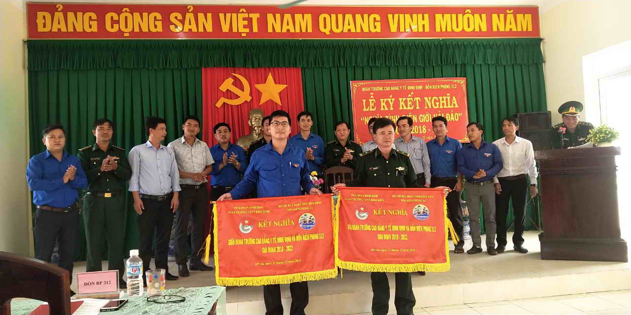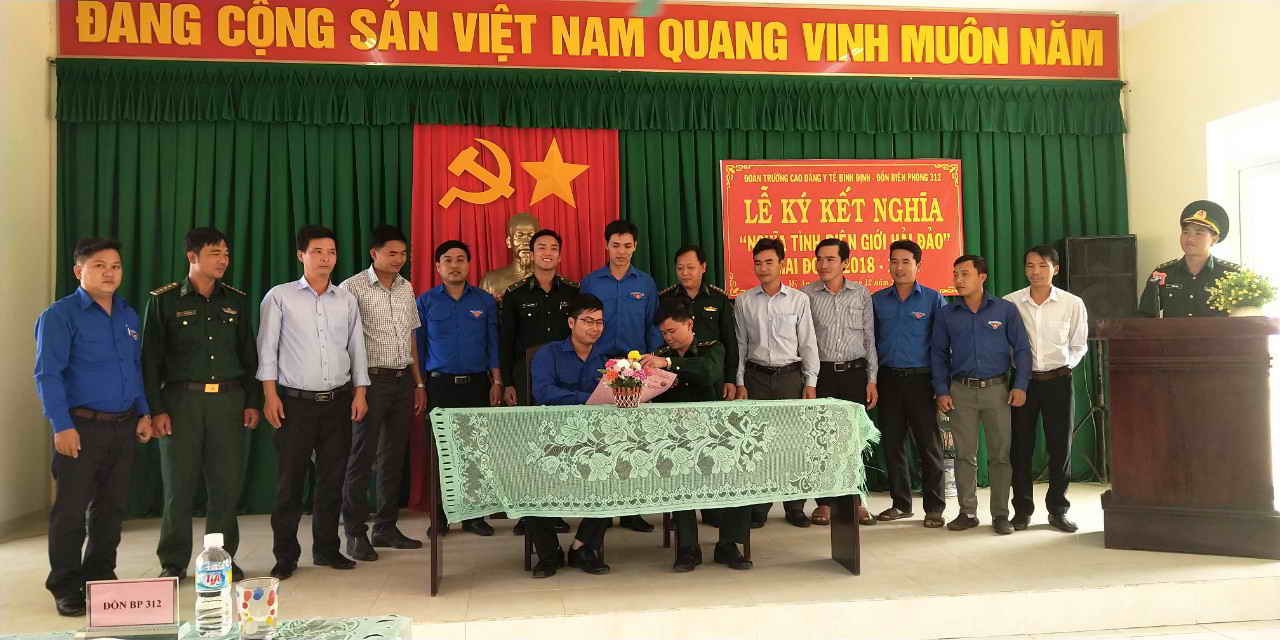 Thực hiện Kế hoạch phối hợp số 465/CTPH-BCH-TĐTN, ngày 30/3/2018 của Đoàn TNCS Hồ Chí Minh tỉnh Bình Định và Bộ Chỉ huy Bộ đội Biên phòng tỉnh về việc “Phát huy vai trò xung kích của tuổi trẻ tham gia xây dựng và bảo vệ chủ quyền, an ninh biên giới quốc gia” giai đoạn 2018 - 2022. Đồng thời thực hiện theo kế hoạch phân công của Tỉnh Đoàn Bình Định về chương trình kết nghĩa “Nghĩa tình Biên giới hải đảo”, vào ngày 22/12/2018 tại đồn Biên phòng 312, xã Mỹ An, huyện Phù Mỹ, tỉnh Bình Định đã diễn ra Lễ kết nghĩa giữa Đoàn Trường Cao đẳng Y tế Bình Định và Đồn Biên phòng 312. Đến dự có đ/c Thiếu tá Đoàn Xuân Hùng - Chính trị viên Ban Chỉ huy đồn Biên phòng 312, đ/c Nguyễn Hồng Nguyên - Ủy viên Ban Thường vụ, Trưởng Ban phong trào tỉnh Đoàn và hơn 100 cán bộ, nhà giáo, sinh viên nhà trường và chiến sĩ Đồn Biên phòng 312.