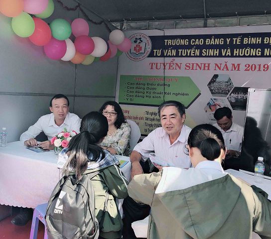 Trong các ngày từ 06 - 14/3/2019, trường Cao đẳng Y tế Bình Định cùng với 12 trường Đại học và Cao đẳng khác, bao gồm: Đại học Quốc tế Sài Gòn, Đại học Kinh tế - Kỹ thuật Bình Dương, Đại học Yersin Đà Lạt, Đại học Công nghệ Thực phẩm, Cao đẳng FPT Polytechnic, Cao đẳng Công nghệ Thủ Đức, Cao đẳng Công nghệ & Quản trị Sonadezi, Cao đẳng Xây dựng thành phố Hồ Chí Minh, Cao đẳng Cơ điện - Xây dựng và Nông lâm Trung bộ, Cao đẳng Kỹ thuật và Công nghệ Quy Nhơn và Hướng nghiệp Á Âu đã tham gia tư vấn tuyển sinh và hướng nghiệp cho các em tại 28 trường Trung học phổ thông thuộc các huyện Hoài Nhơn, Phù Mỹ, Phù Cát, Hoài Ân, Tây Sơn và thị xã An Nhơn. Chương trình gồm phần tư vấn chung, tư vấn trực tiếp và giới thiệu về trường. Nhiều học sinh đã được gặp gỡ, trao đổi trực tiếp với các thành viên trong Ban Tư vấn về những băn khoăn liên quan đến việc chọn ngành nghề phù hợp với mong muốn, năng lực, nguyện vọng của gia đình và bản thân.