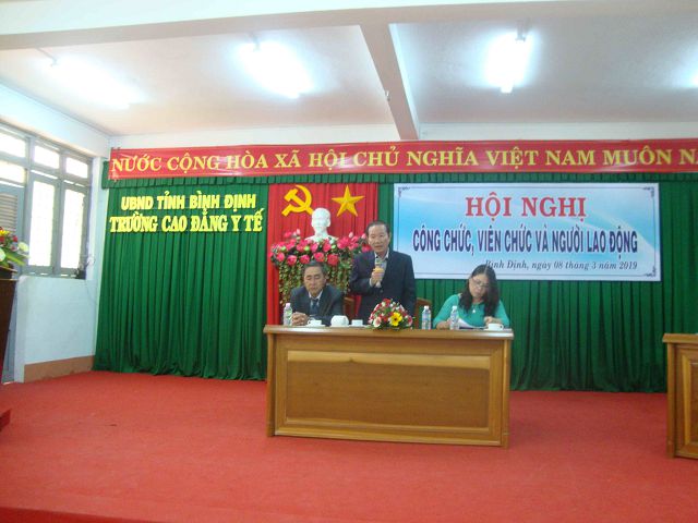 Trong không khí tưng bừng của cả nước cùng ra sức thi đua lập thành tích chào mừng các ngày lễ lớn trong năm 2019, vào chiều ngày 08/3/2019, trường Cao đẳng Y tế Bình Định đã long trọng tổ chức Hội nghị Công chức, viên chức và người lao động năm 2019 để tổng kết và đánh giá lại những hoạt động trong năm qua và đề ra phương hướng hoạt động của nhà trường trong năm tới, nhằm thực hiện thắng lợi những nhiệm vụ chính trị của Đảng và Nhà nước trong việc thực hiện Nghị quyết Đại hội Đảng các cấp về đổi mới sự nghiệp giáo dục và đào tạo. Đây cũng là năm thứ hai nhà trường chuyển sự quản lý giáo dục và đào tạo về Bộ Lao động - Thương binh và Xã hội.