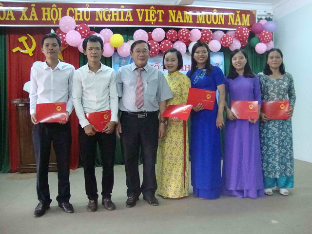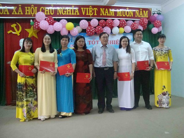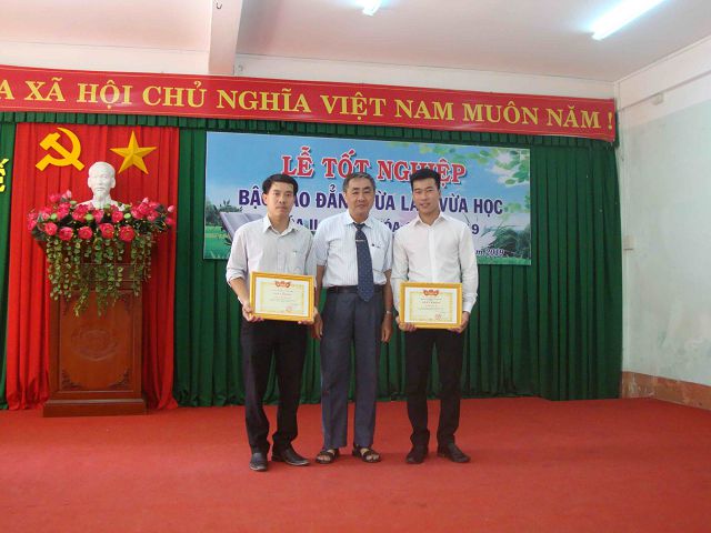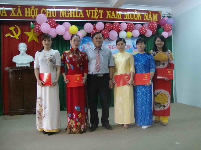 Đồng chí Lê Quang Đáng - Phó Bí thư Đảng ủy, Phó Hiệu trưởng nhà trường trao bằng tốt nghiệp cho các sinh viên. Nhà trường cũng trao giấy khen cho các sinh viên đạt thành tích xuất sắc trong học tập và có nhiều đóng góp tích cực trong phong trào của lớp và trường.