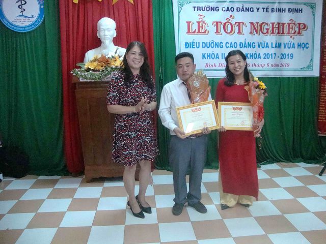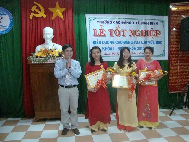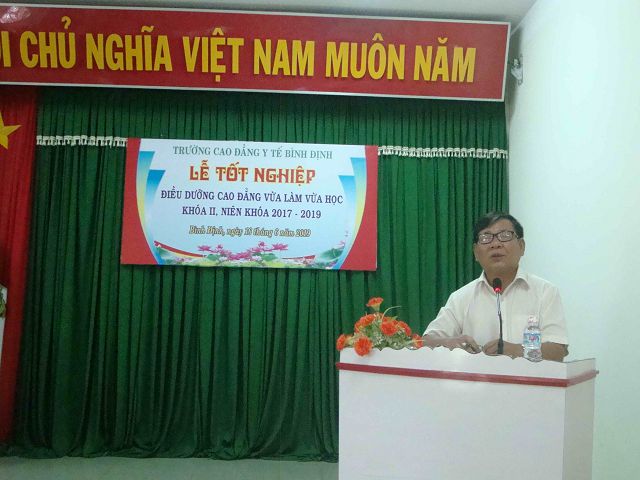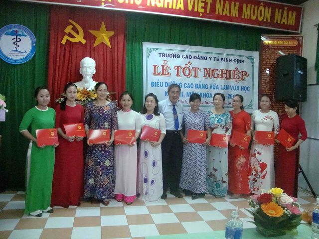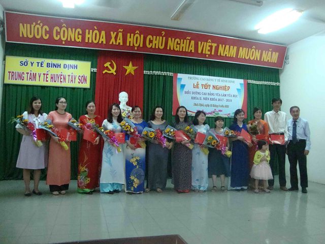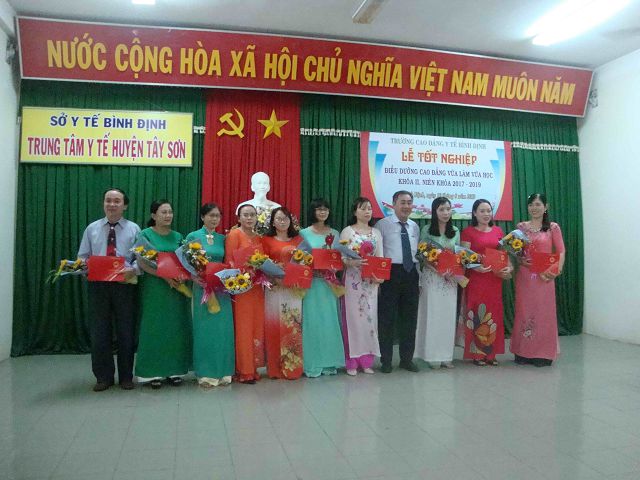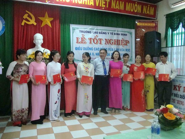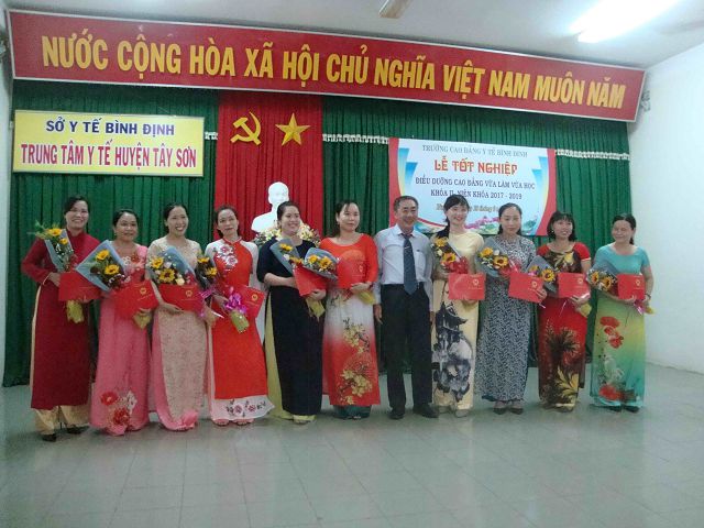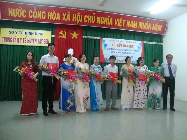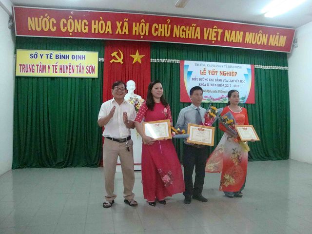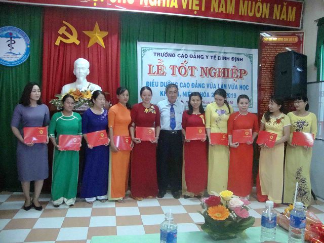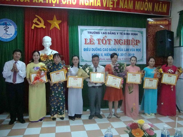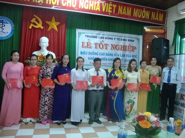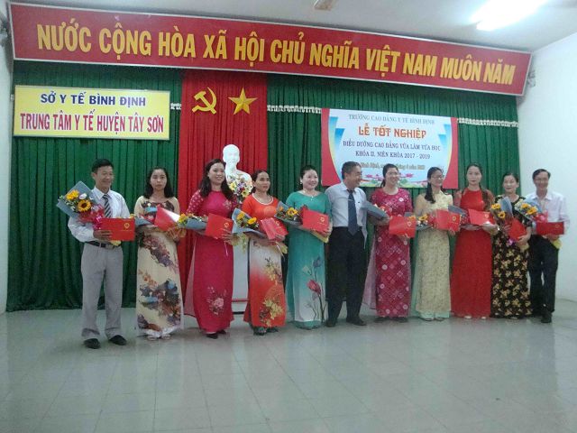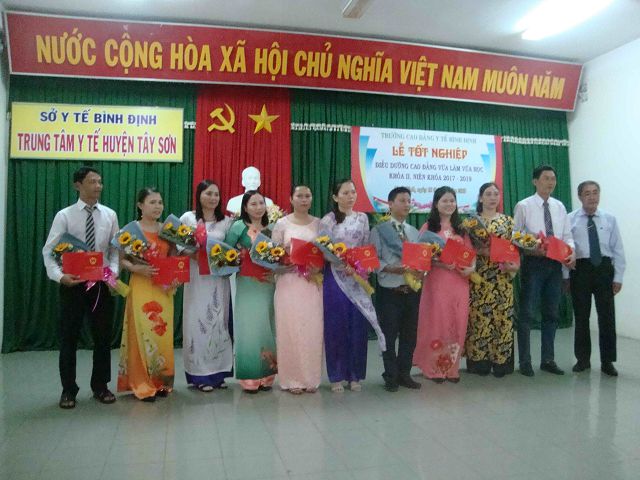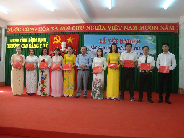 Lễ trao bằng tốt nghiệp bậc cao đẳng hệ liên thông hình thức vừa làm vừa học khóa 2, niên khóa 2017 - 2019 của trường Cao đẳng Y tế Bình Định đã thành công tốt đẹp. Xin chúc các bạn sinh viên, chúc các đồng nghiệp sức khỏe, hạnh phúc và thành đạt. Chúc các bạn sinh viên đang làm hợp đồng sớm được vào biên chế nhà nước. Mong các bạn tiếp tục phấn đấu đạt nhiều thành tích tốt trong công tác, góp phần tích cực trong việc xây dựng truyền thống và thương hiệu trường Cao đẳng Y tế Bình Định.