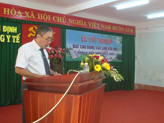 Phát biểu tại buổi lễ, Giám đốc các Trung tâm Y tế huyện, thị xã đã bày tỏ lời cảm ơn đến Ban Giám hiệu, cán bộ, viên chức, nhà giáo của nhà trường đã giúp đỡ, tạo điều kiện để các Trung tâm Y tế hoàn thành nhiệm vụ nâng cấp đội ngũ cán bộ y tế theo quy định của nhà nước trước thời hạn 6 năm. Đồng thời chân thành chúc mừng thành tích học tập của các sinh viên; mong muốn các sinh viên tiếp tục phát huy những kiến thức, kỹ năng đã được bồi dưỡng, trang bị trong nhà trường, luôn là những cán bộ y tế có đức, có tài và tiếp tục trao dồi chuyên môn, nghiệp vụ, tiếp tục học tập không ngừng, luôn cố gắng vươn lên, tất cả vì mọi người thân yêu, vì cuộc sống và hạnh phúc của người dân.