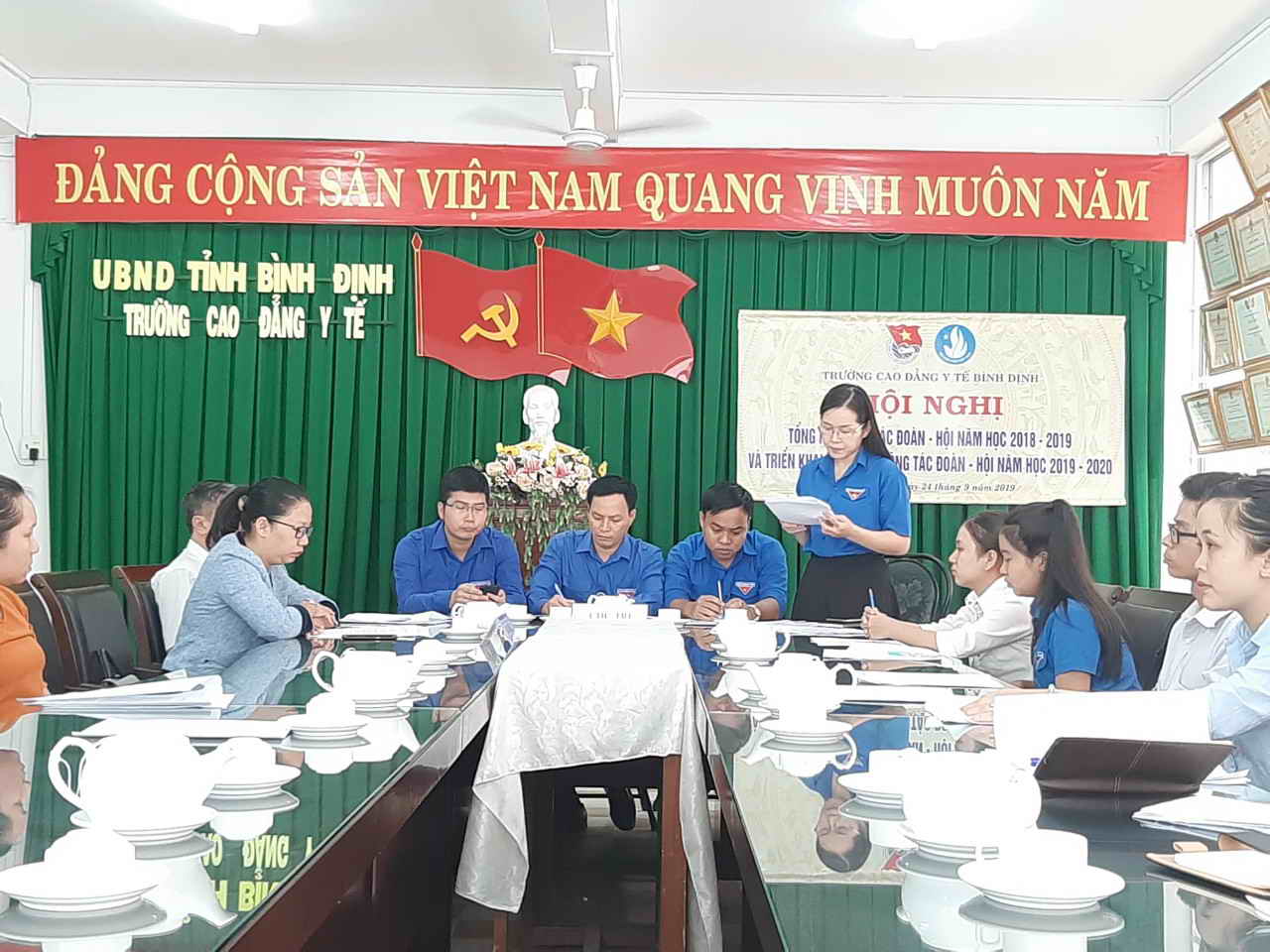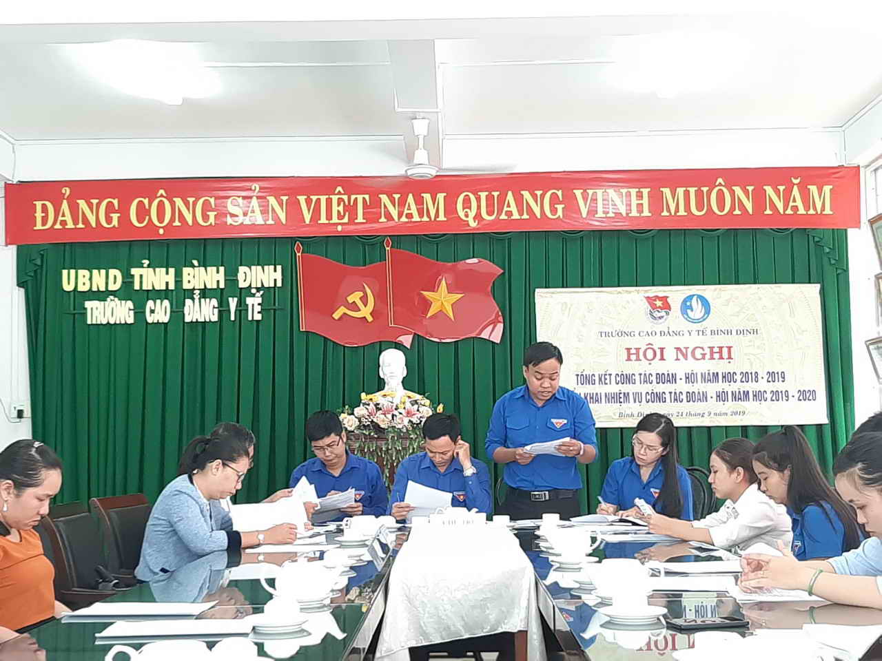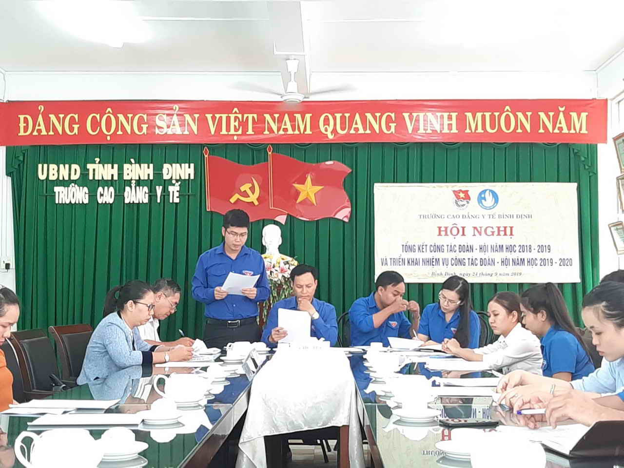 Đ/c Trần Trọng Viên - Phó Bí thư Đoàn Trường đã đọc báo cáo Tổng kết công tác Đoàn năm học 2018 - 2019; đ/c Trần Công Toại - Phó Bí thư Đoàn Trường đã trình bày Chương trình công tác Đoàn và phong trào thanh niên trường học năm học 2019 - 2020; đ/c Nguyễn Thanh Thảo- Chủ tịch Hội Sinh viên Việt Nam trường Cao đẳng Y tế Bình Định đã đọc báo cáo Tổng kết công tác Hội và phong trào sinh viên năm học 2018 - 2019, đồng thời trình bày Chương trình công tác Hội và phong trào sinh viên năm học 2019 - 2020.