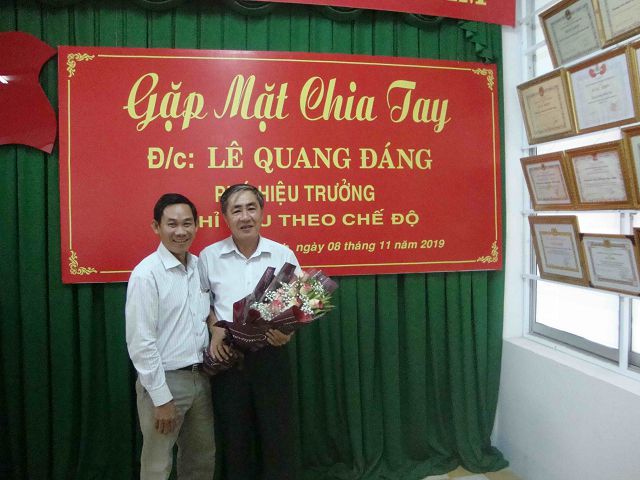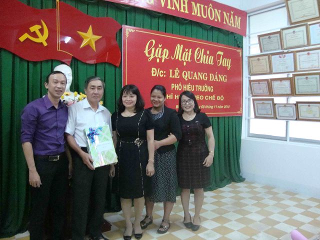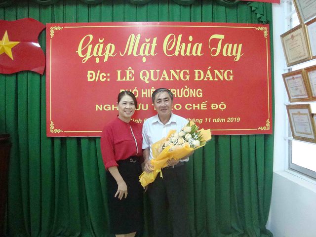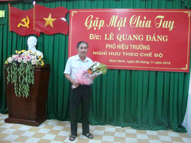 Trong cuộc đời mỗi con người ai cũng phải trải qua thời gian học tập, đi làm, thay đổi nơi công tác hay giữ các chức vụ khác nhau và cuối cùng là đến tuổi nghỉ hưu... Biết bao kỷ niệm vui buồn, biết bao thời gian công tác đã để lại những ấn tượng không thể nào quên. Thời gian thấm thoát trôi qua và nay thầy Lê Quang Đáng - Phó Hiệu trưởng nhà trường với gần 40 năm công tác, trong đó có 30 năm gắn bó với nhà trường đã được về nghỉ hưu theo chế độ. Vào chiều ngày 08/11/2019, Ban Giám hiệu, Công đoàn, Đoàn thanh niên và các trưởng phòng/bộ môn nhà trường đã long trọng tổ chức buổi Gặp mặt chia tay đ/c Lê Quang Đáng nghỉ hưu với mong muốn đ/c hãy giữ lại những kỷ niệm tốt đẹp nhất với các đồng nghiệp của mình trong môi trường này.