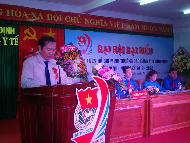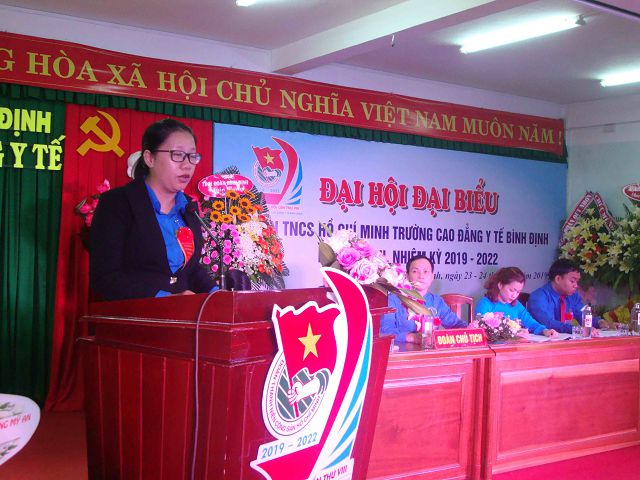 Đ/c Huỳnh Thị Anh Thảo - Phó Bí thư Tỉnh Đoàn, Chủ tịch Hội Sinh viên tỉnh Bình Định đã phát biểu đánh giá cao và ghi nhận những thành tích mà Đoàn trường đã đạt được trong nhiệm kỳ qua. Đoàn trường đã tuyên truyền, rèn luyện đạo đức, lý tưởng cho thế hệ trẻ có hiệu quả; các phong trào hoạt động cách mạng được triển khai rộng khắp, đa dạng, là điểm sáng trong các phong trào tình nguyện; công tác xây dựng tổ chức Đoàn chuyển biến tích cực. Bên cạnh đó, Đoàn Trường cũng còn có những hạn chế nhất định: công tác chính trị tư tưởng chưa triển khai thường xuyên, cung cấp thông tin định hướng cho đoàn viên thanh niên còn chậm. Một số hoạt động Đoàn chưa sâu, chưa lan tỏa. Công tác đồng hành cùng học sinh sinh viên khởi nghiệp, lập nghiệp chưa rõ. Trong thời gian đến Đoàn Trường cần phải: Đổi mới các hoạt động giáo dục chính trị dể quán triệt các chủ trương, đường lối, chính sách của Đảng, pháp luật của Nhà nước, nhất là những chủ trương về học tập, về nghề nghiệp liên quan đến sinh viên. Tăng cường và phát huy hơn nữa các phong trào cách mạng, tăng cường các hoạt động tình nguyện để bảo vệ, chăm sóc và nâng cao sức khỏe cho cộng đồng. Tăng cường hỗ trợ khởi nghiệp cho học sinh sinh viên. Động viên đoàn viên thanh niên học tập, rèn luyện, tạo các sân chơi lành mạnh để sinh viên có điều kiện tham gia. Tiếp tục nâng cao các tổ chức cơ sở Đoàn, chất lượng đoàn viên, rèn luyện đoàn viên trong giai đoạn mới, tăng cường hoạt động câu lạc bộ, đội, nhóm. Tăng cường giới thiệu đoàn viên ưu tú cho Đảng xem xét kết nạp. Ban Chấp hành Đoàn Trường khóa mới cần phát huy hơn nữa tinh thần trách nhiệm để hoàn thành nhiệm vụ và thực hiện tốt 5 tăng cường.