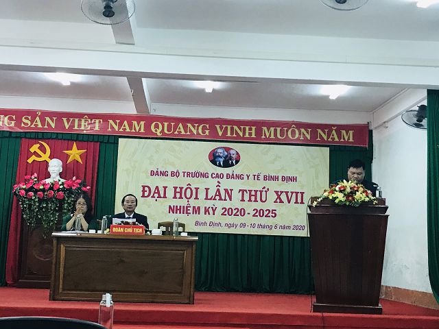 Thực hiện Kế hoạch số 108-KH/ĐUK, ngày 01/8/2019 của Ban Thường vụ Đảng ủy Khối các cơ quan tỉnh về thực hiện Chỉ thị 35-CT/TW của Bộ Chính trị (khóa XII) về đại hội đảng bộ các cấp tiến tới Đại hội đại biểu toàn quốc lần thứ XIII của Đảng; Hướng dẫn 10-HD/ĐUK, ngày 29/10/2019 của Ban Thường vụ Đảng ủy Khối các cơ quan tỉnh về một số nội dung đại hội chi, đảng bộ cơ sở nhiệm kỳ 2020- 2025; Đảng bộ trường Cao đẳng Y tế Bình Định đã long trọng tổ chức Đại hội lần thứ XVII, nhiệm kỳ 2020 - 2025.