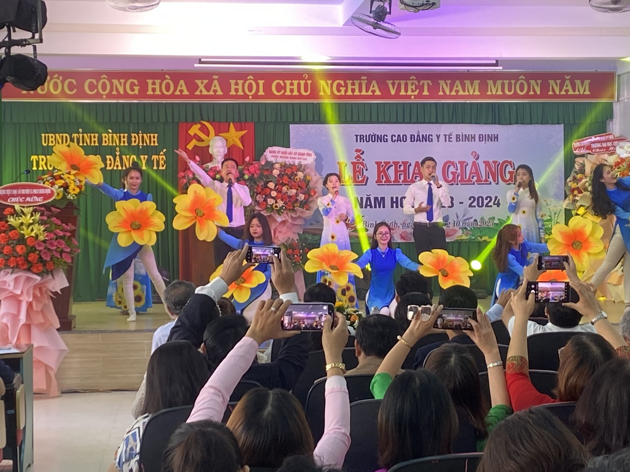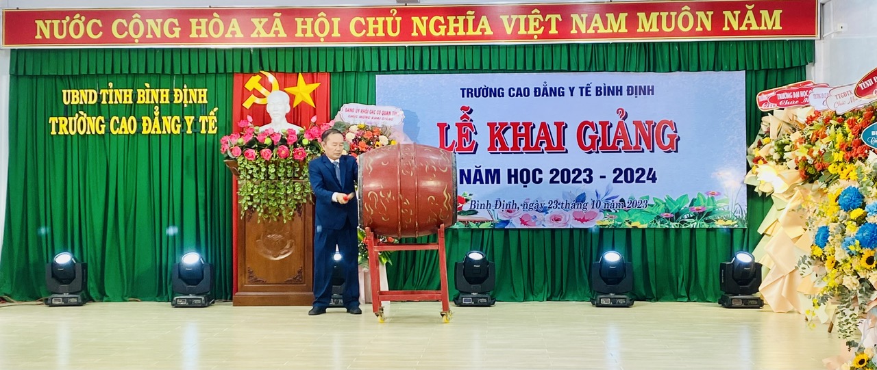 Sáng ngày 23/10/2023, Trường Cao đẳng Y tế Bình Định tổ chức Lễ Khai giảng năm học 2023-2024, đến dự có Đ/c Bùi Quang Nhựt, Phó Bí thư Đảng ủy Khối các cơ quan tỉnh; Đ/c Huỳnh Ngọc Hải, Trưởng phòng Việc làm và Giáo dục nghề nghiệp Sở Lao động-TB&XH tỉnh; đại diện lãnh đạo các Bệnh viện và Trung tâm Y tế trên địa bàn tỉnh và các đơn vị Tài trợ. Về phía Trường có Tiến sĩ-Bác sĩ Trần Đình Đạt-Bí thư Đảng ủy, Hiệu trưởng; Tiến sĩ-Bác sĩ Bùi Lê Vĩ Chinh-Phó Bí thư Đảng ủy, Phó Hiệu trưởng, Chủ tịch Hội đồng Trường; đội ngũ Nhà giáo, VC-NLĐ, và nhiệt liệt chào mừng các sinh viên đại diện cho hơn 600 HSSV đang theo học tại Trường đã đến dự lễ.